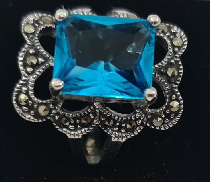Unique Silver Ring with stone, european silver.